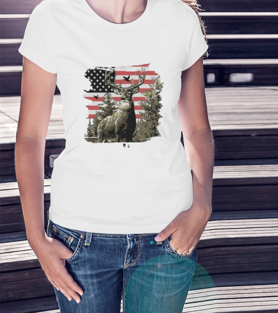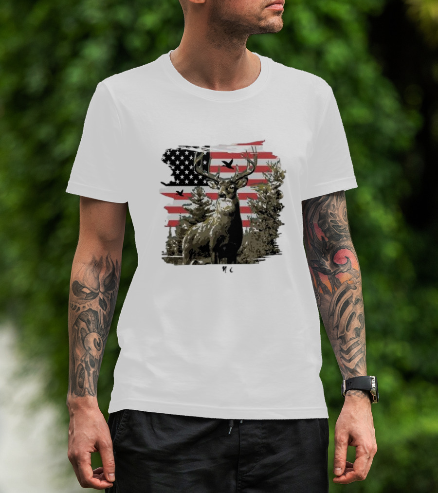 American Buck Cardin Mccoy Deer Forest Flag Scene T-Shirt