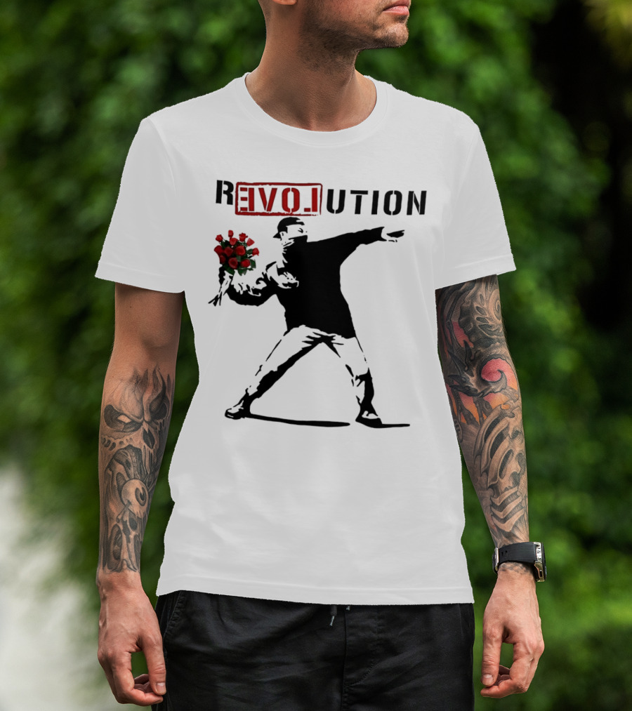 Revolution Rage Flower Thrower Banksy Stencil Roses T-Shirt