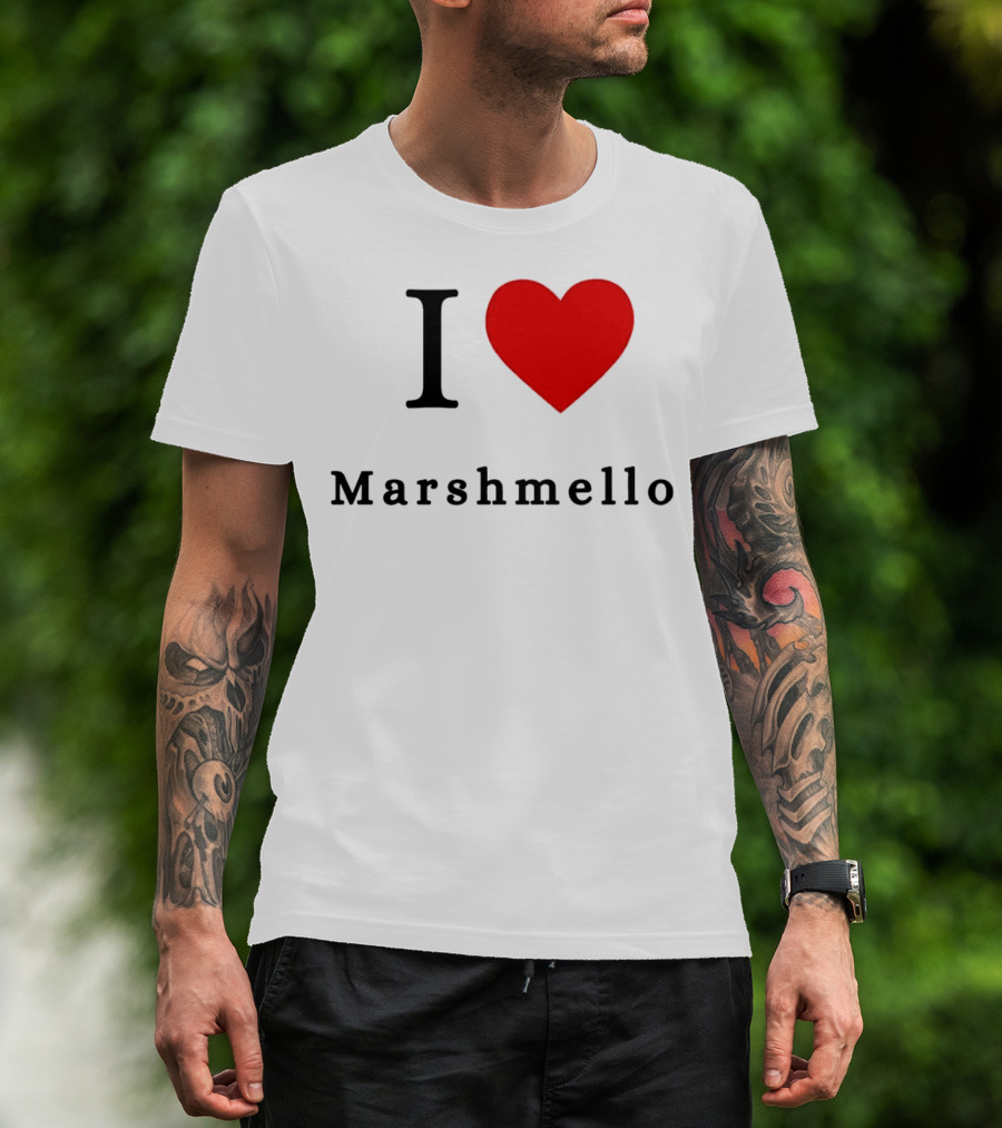The I ❤️ Marshmello T-shirt is designed for everyday wear and a consistent fit. Fabric is pre-shrunk ring-spun cotton with durable stitching. See the size chart below for exact measurements.