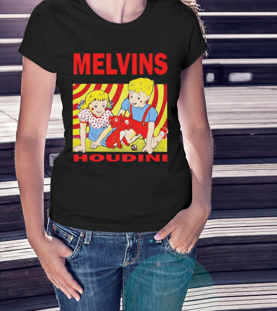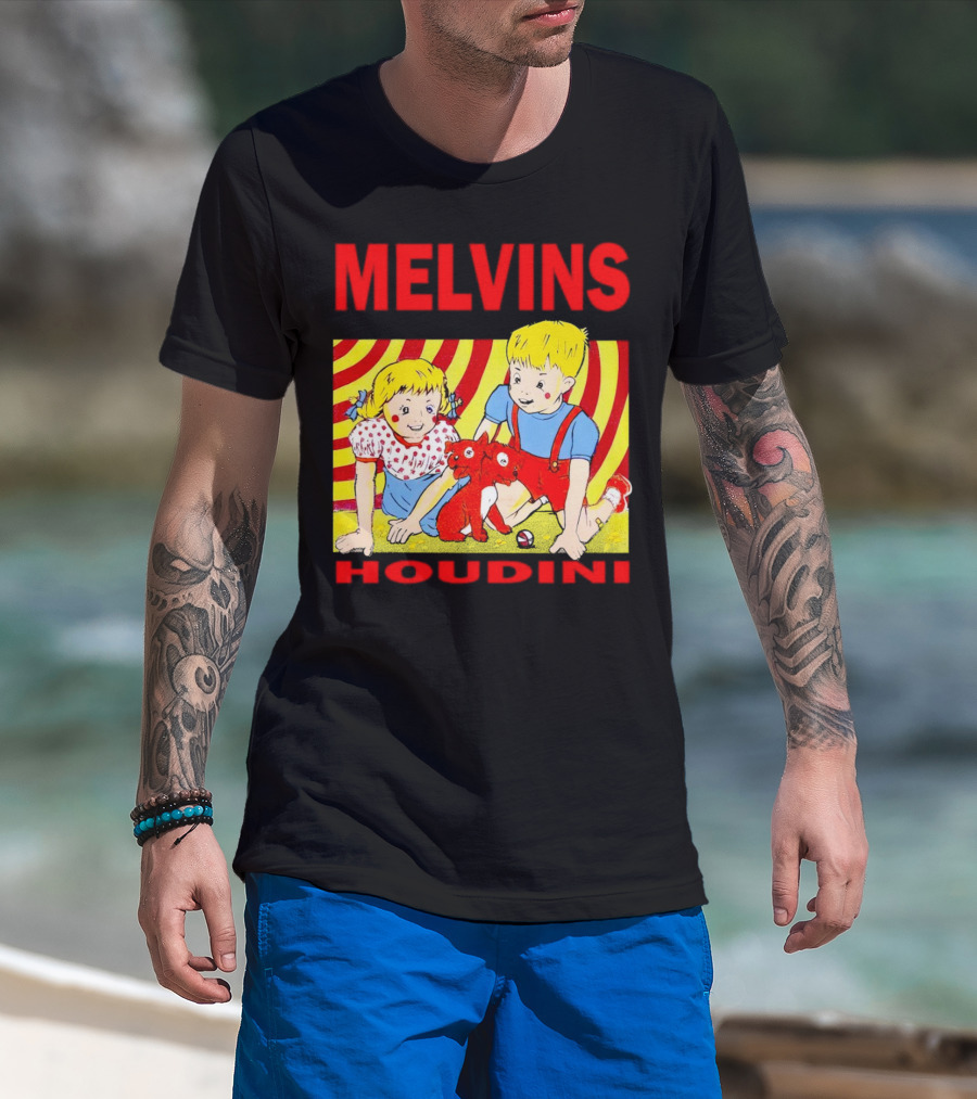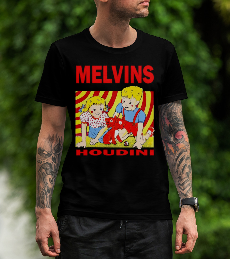 Melvins Houdini Late 00s Jerks Kids With Red Dog And Swirling Red Yellow Background T-Shirt