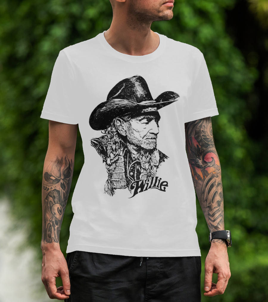The Willie Nelson Cowboy Hat Braid Classic Sketch T-shirt is designed for everyday wear and a consistent fit. Fabric is pre-shrunk ring-spun cotton with durable stitching. See the size chart below for exact measurements.