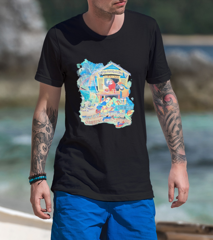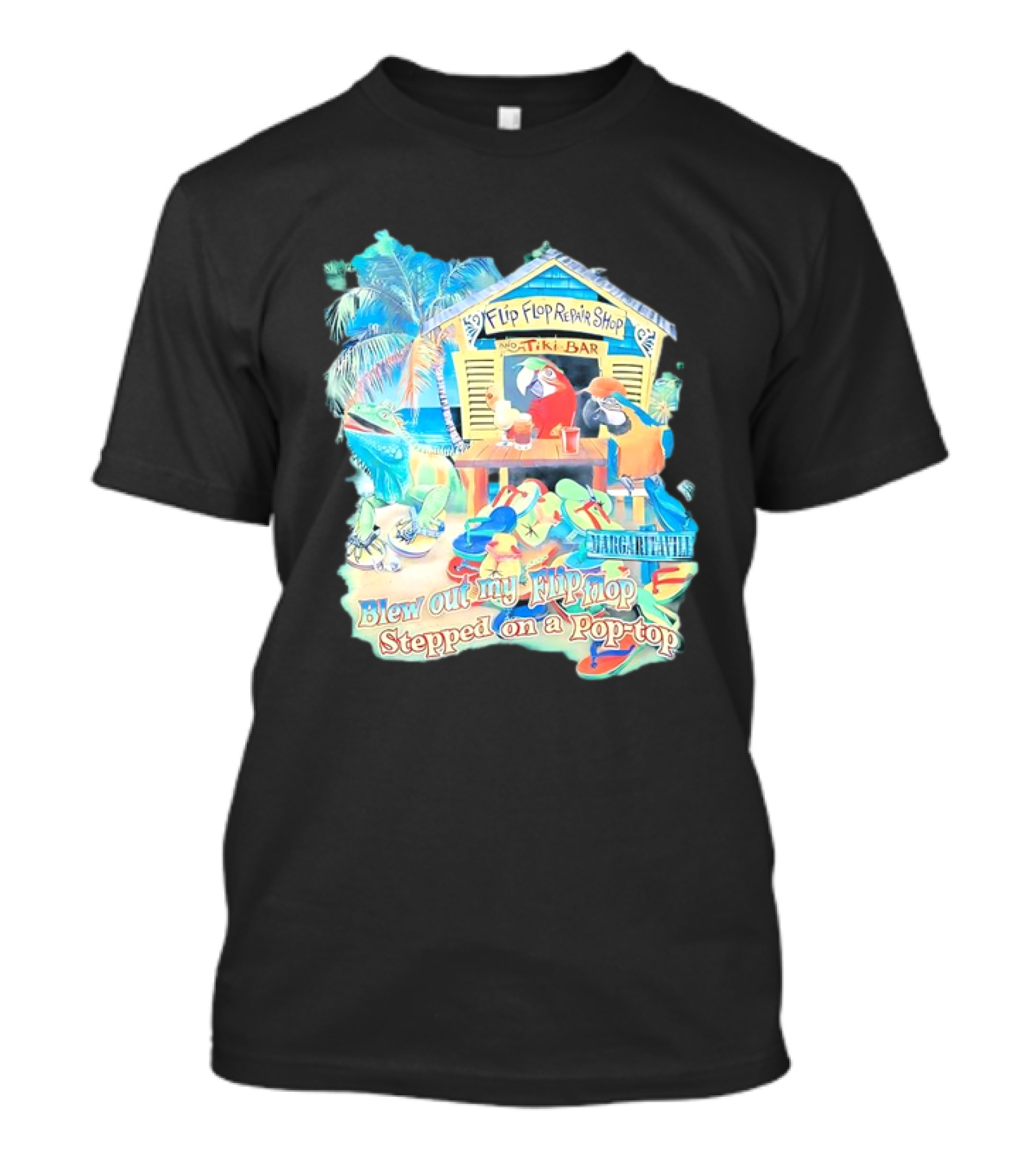 Margaritaville Flip Flop Repair Shop Tiki Bar Parrot Iguana Blew Out My Flip Flop Stepped On A Pop Top T-Shirt