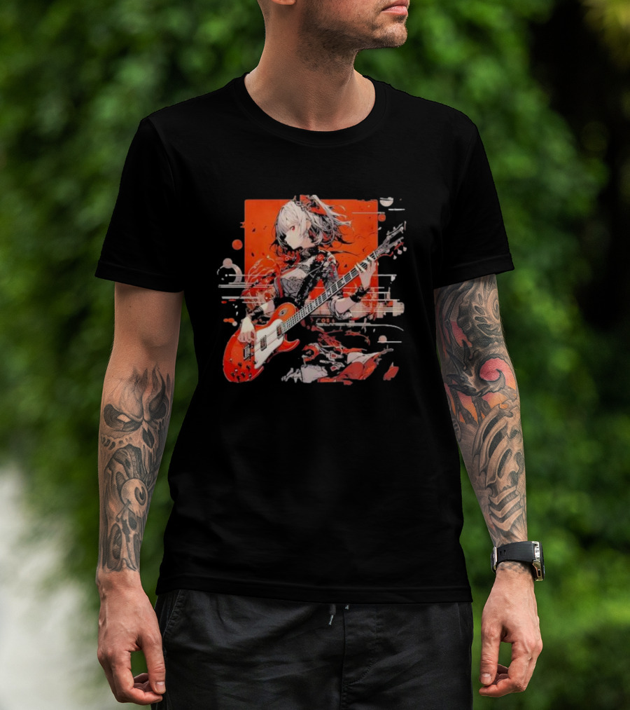 Metal Music Anime Oden Electric Guitar Red Aesthetic T-Shirt