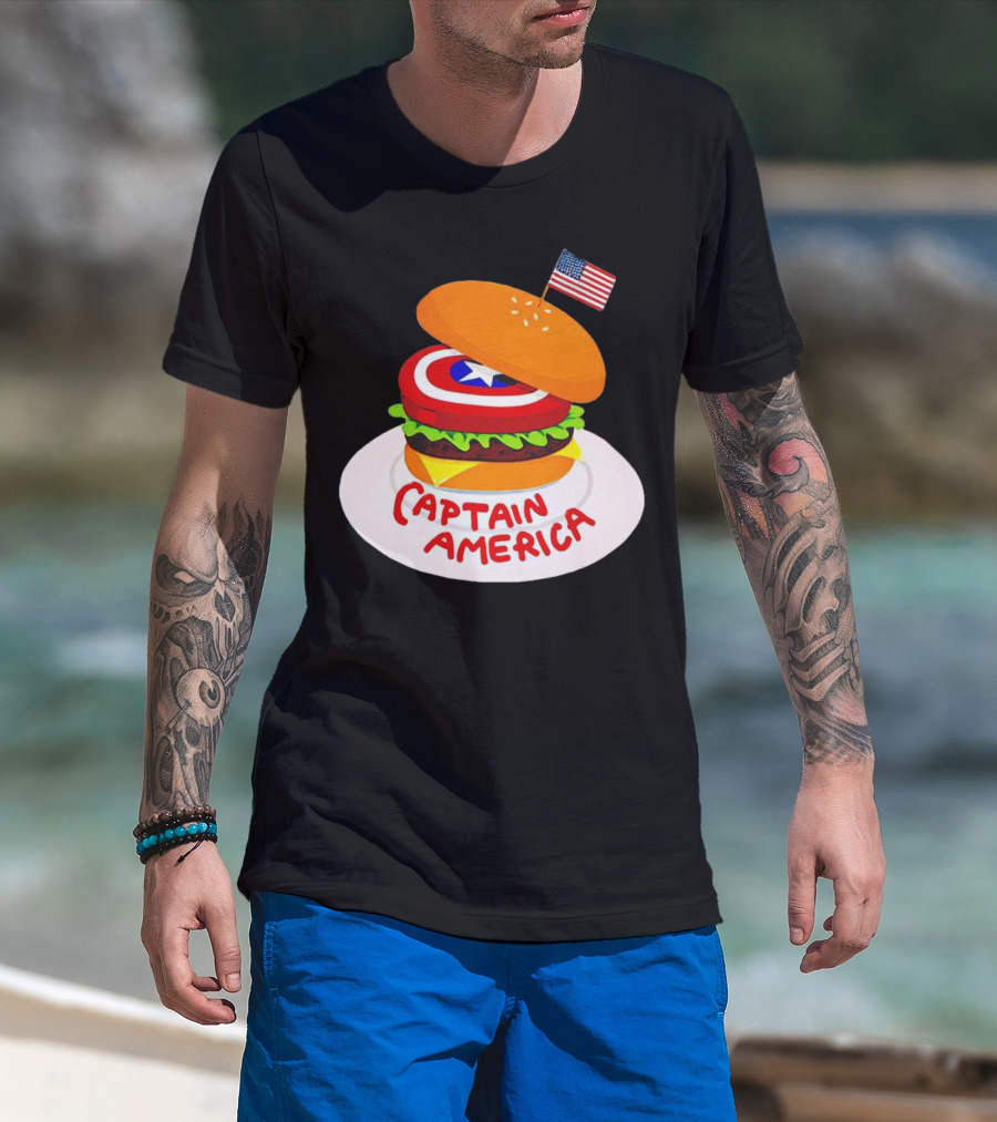 Captain America Burger With Flag And Shield Lettuce Bun T-Shirt
