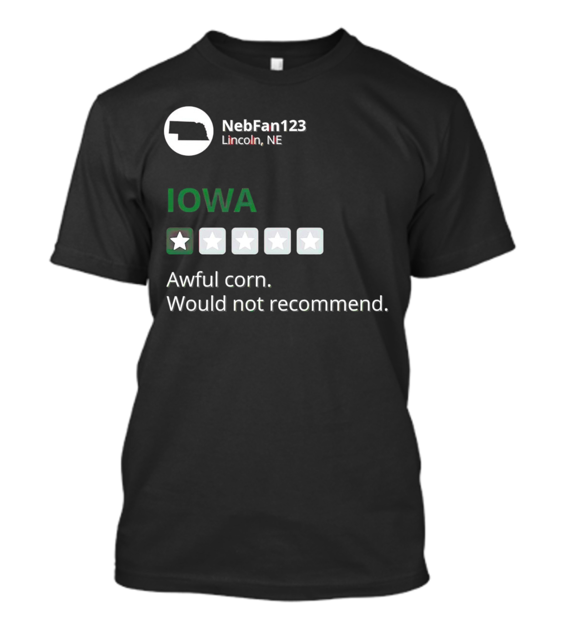 Iowa Awful Corn NebFan123 Lincoln NE Would Not Recommend T-Shirt