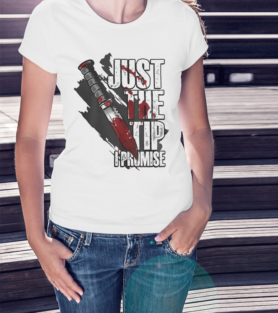 The Just the Tip I Promise Knife T-shirt is designed for everyday wear and a consistent fit. Fabric is pre-shrunk ring-spun cotton with durable stitching. See the size chart below for exact measurements.