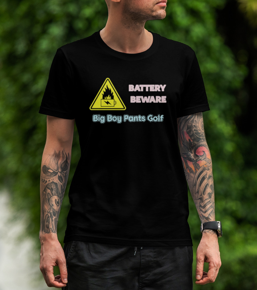 Battery Beware Fire Hazard Big Boy Pants Golf T-Shirt
