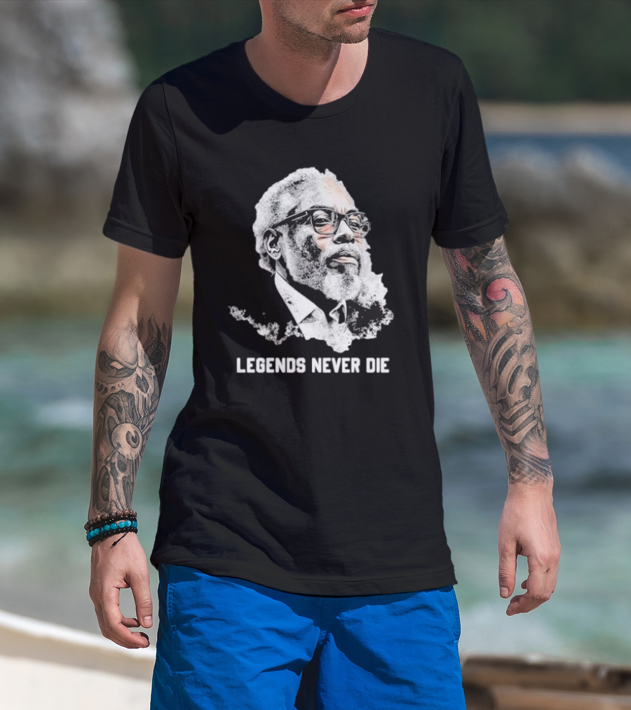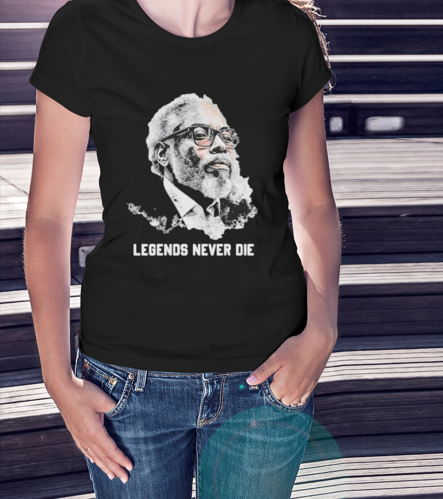 The James Earl Jones Legends Never Die T-shirt is designed for everyday wear and a consistent fit. Fabric is pre-shrunk ring-spun cotton with durable stitching. See the size chart below for exact measurements.