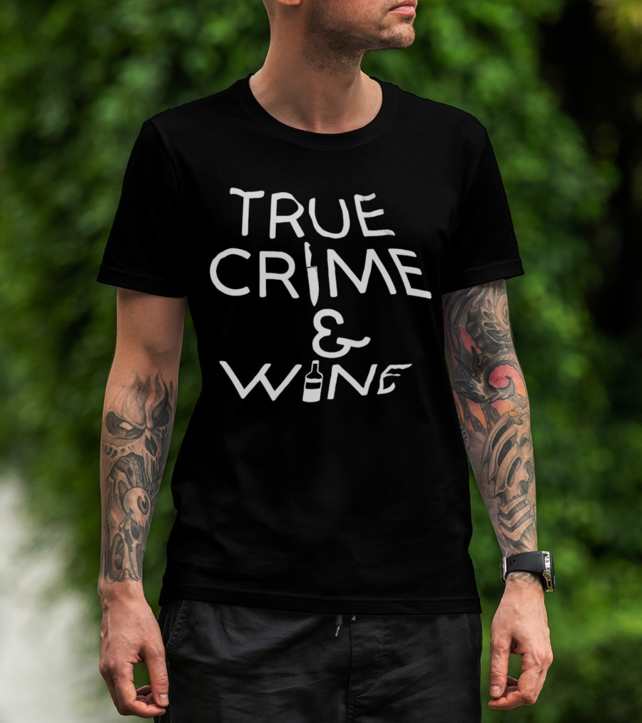 True Crime And Wine Knife And Bottle Motif T-Shirt