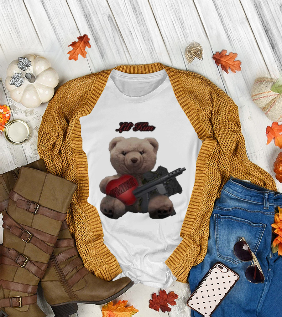 The Lil Kim #Mine Teddy Bear with Gun T-shirt is designed for everyday wear and a consistent fit. Fabric is pre-shrunk ring-spun cotton with durable stitching. See the size chart below for exact measurements.