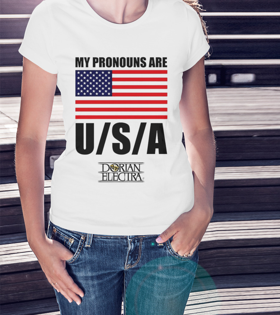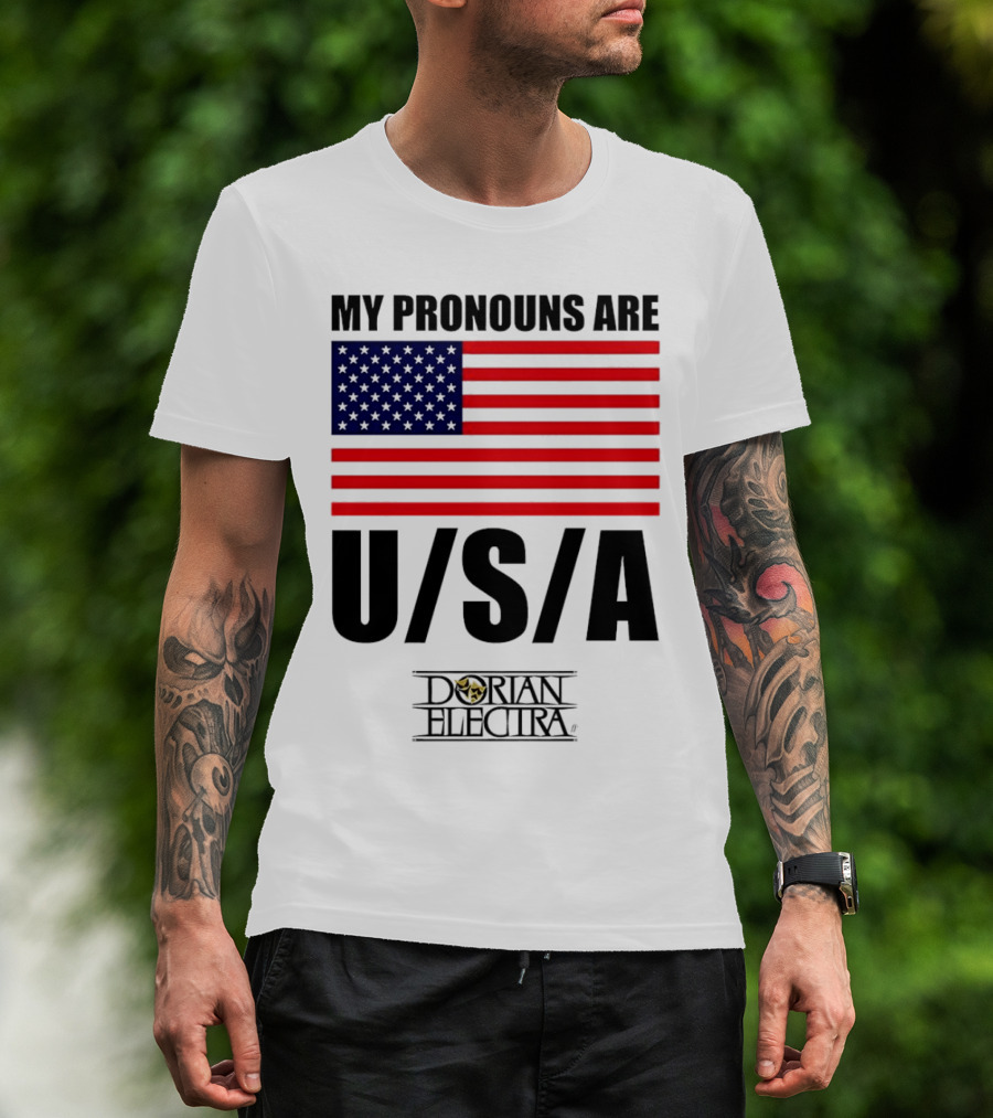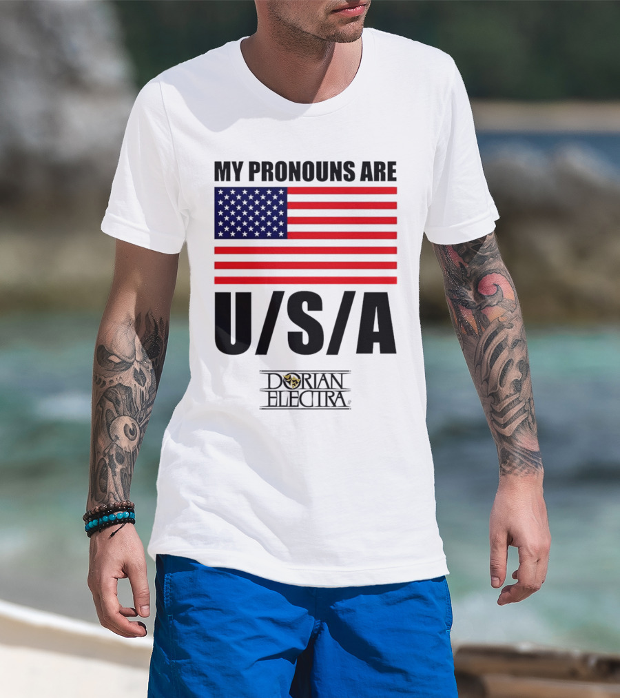 My Pronouns Are USA Dorian Electra American Flag T-Shirt