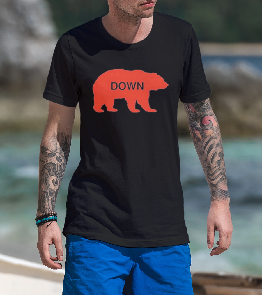 Walking Bear Down Red Bear Silhouette With Text DOWN T-Shirt
