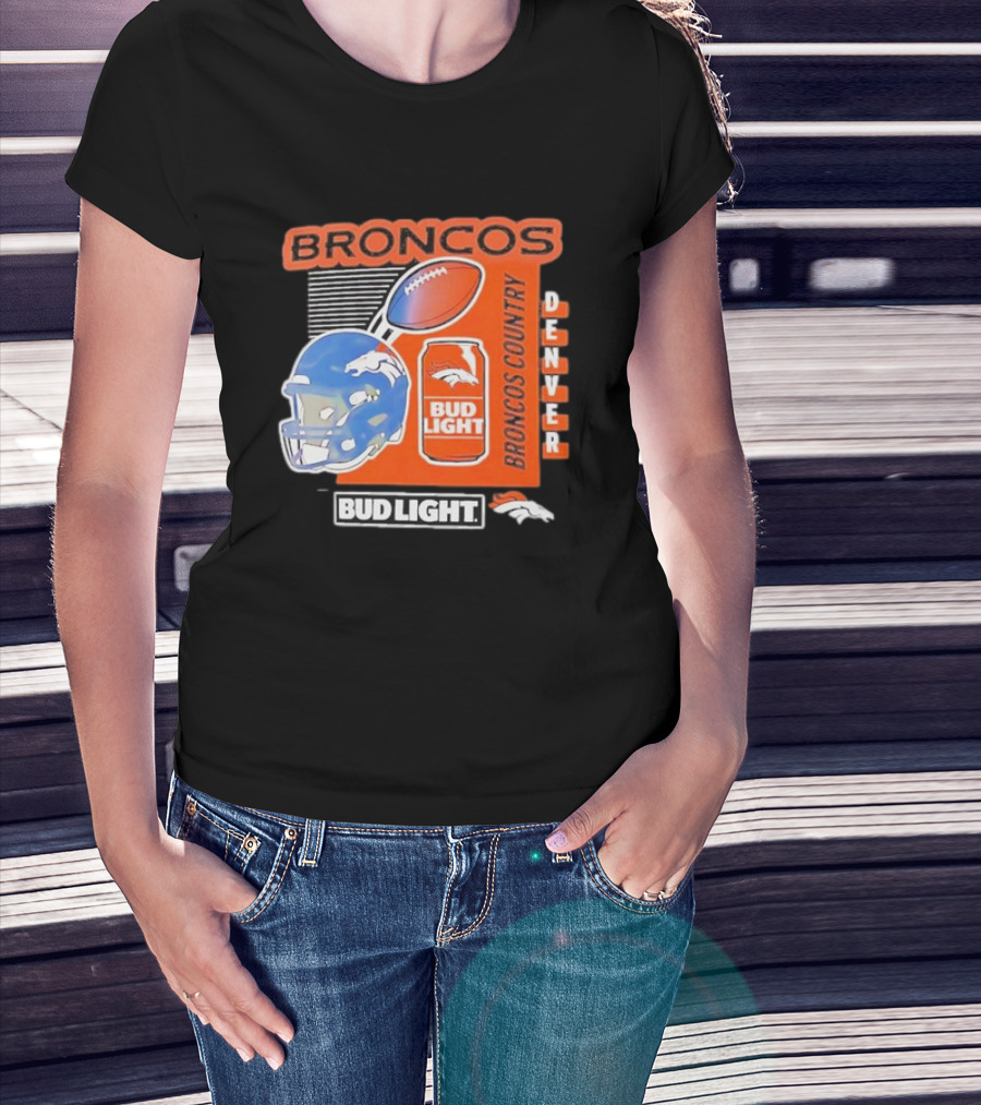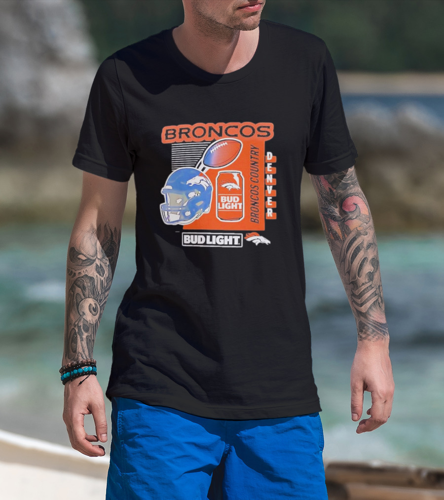 Denver Broncos Bud Light Broncos Country Denver Football Helmet And Can T-Shirt