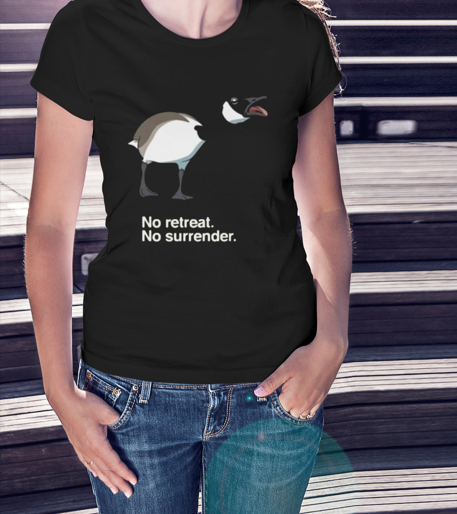 The No Retreat No Surrender Goose T-shirt is designed for everyday wear and a consistent fit. Fabric is pre-shrunk ring-spun cotton with durable stitching. See the size chart below for exact measurements.