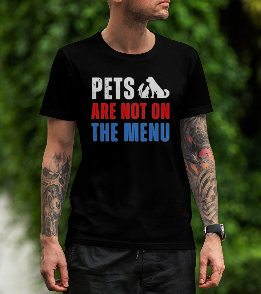 The PETS ARE NOT ON THE MENU T-shirt is designed for everyday wear and a consistent fit. Fabric is pre-shrunk ring-spun cotton with durable stitching. See the size chart below for exact measurements.