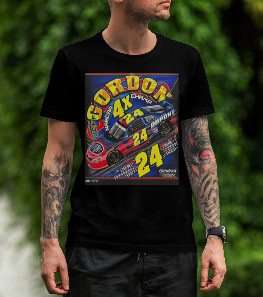 Jeff Gordon #24 Dupont NASCAR 4X Champ 1995-1997-1998-2001 Hendrick Racing T-Shirt