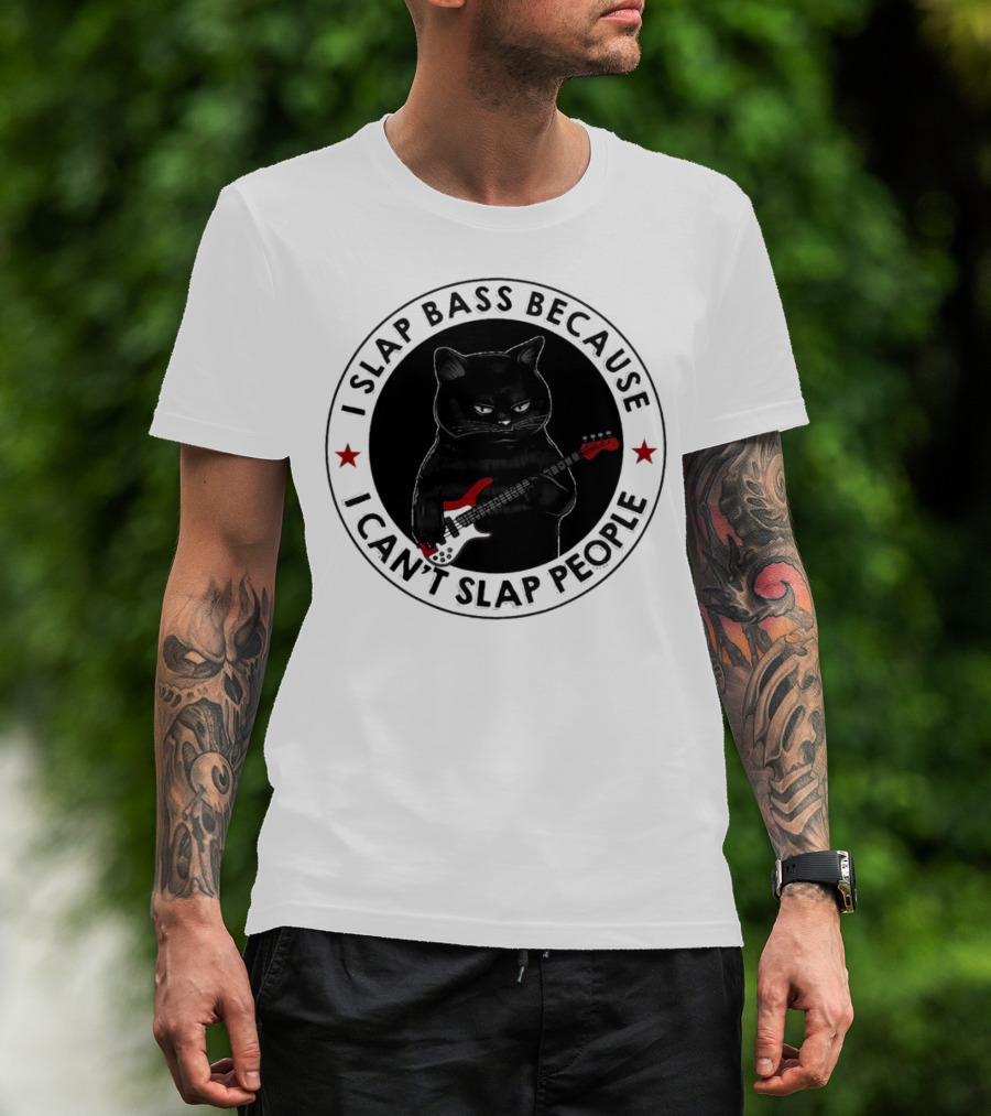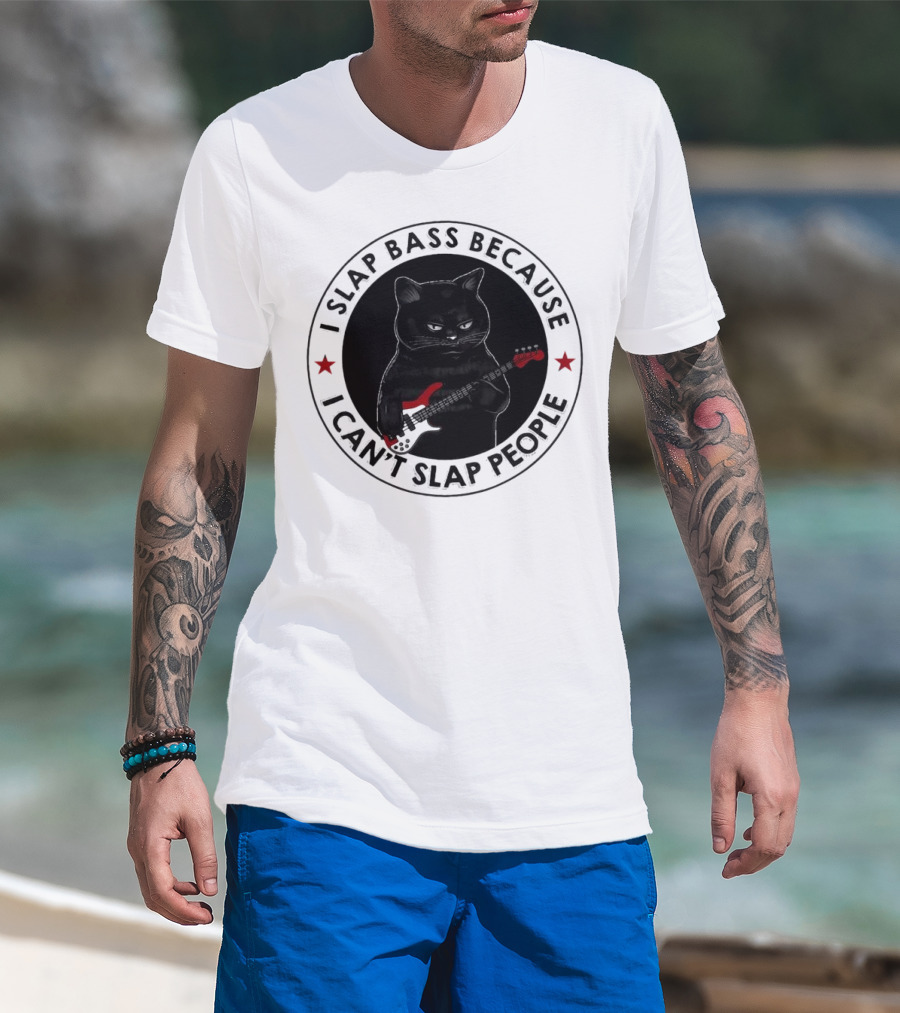 I Slap Bass Because I Can’t Slap People Guitar Cat T-Shirt