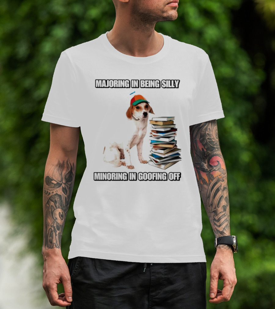 Majoring In Being Silly Minoring In Goofing Off With A Colorful Cap-Wearing Dog And Stack Of Books T-Shirt