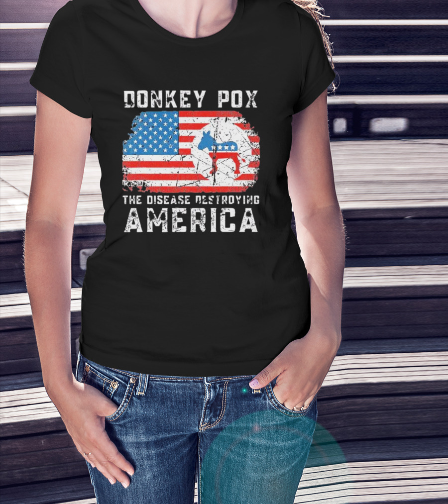 Donkey Pox The Disease Destroying America Flag And Political T-Shirt