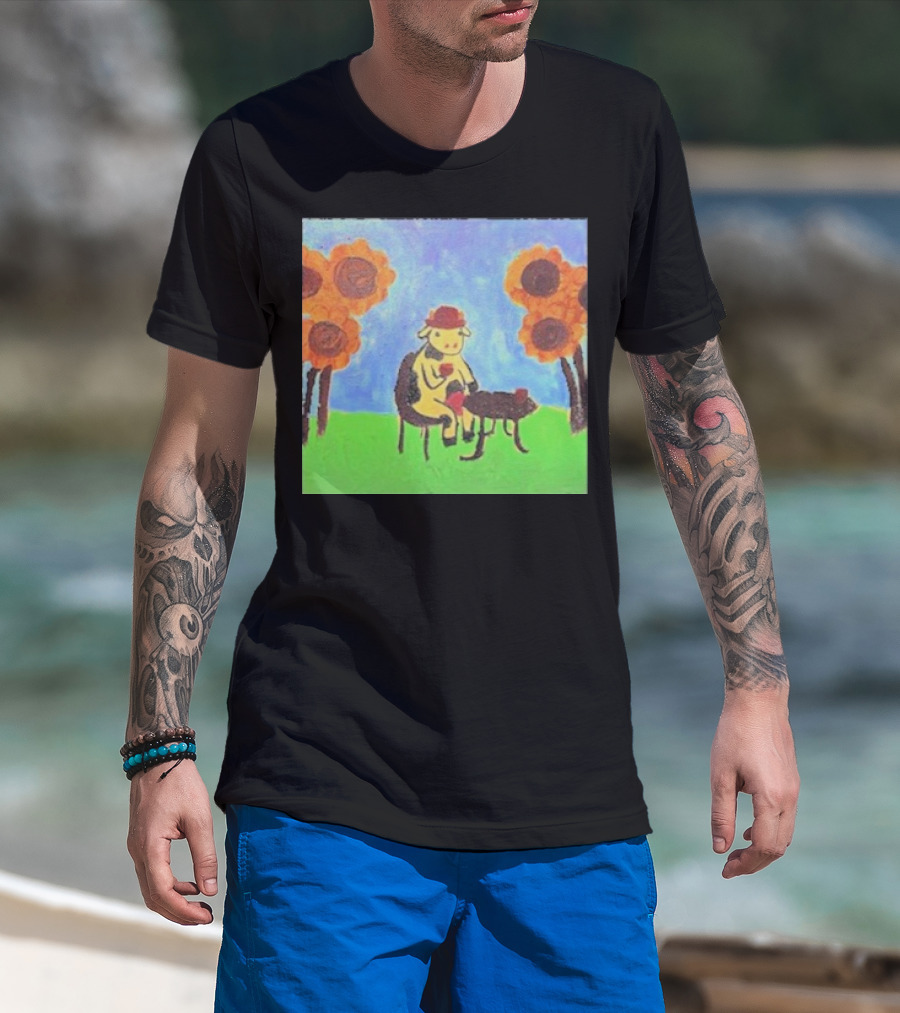 Leanbeeftees Tea Time Cow In Hat With Sunflowers T-Shirt