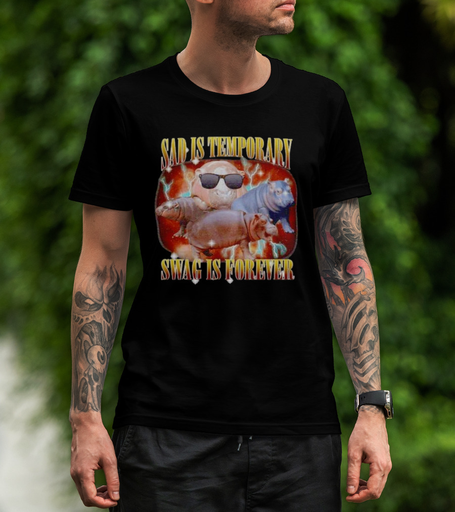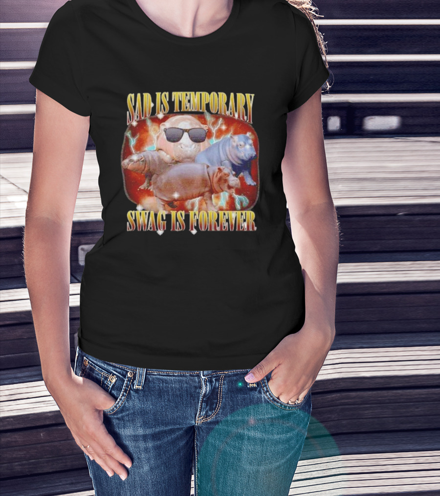 Sad Is Temporary Swag Is Forever Hippos Moo Deng T-Shirt