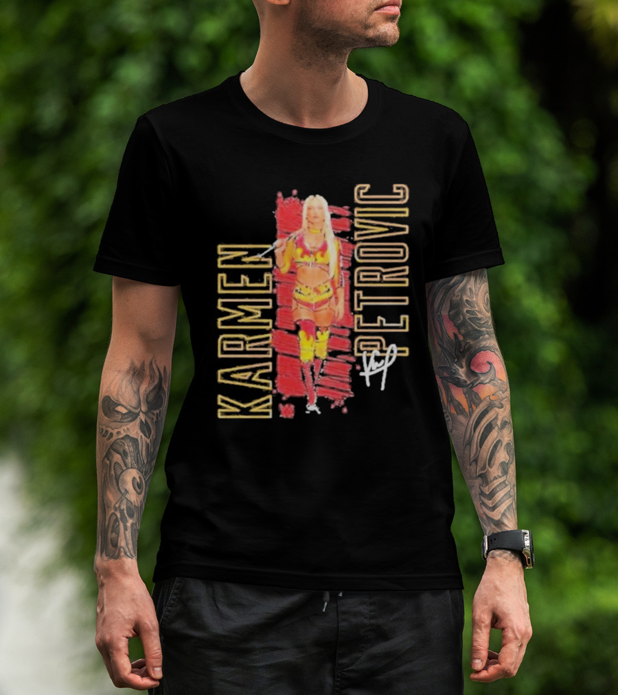 Karmen Petrovic Vertical Signature With Bold Red And Yellow Athlete T-Shirt