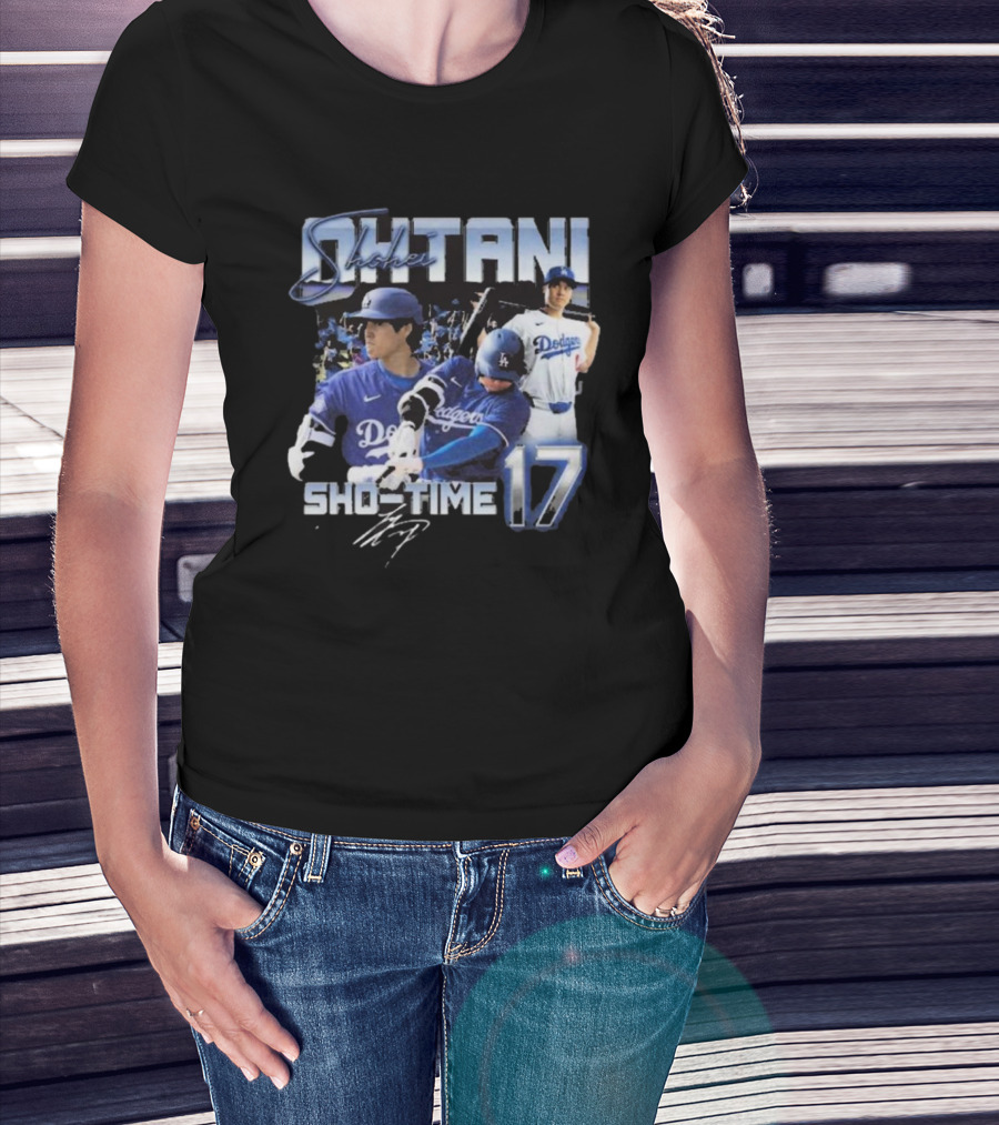 Shohei Ohtani Dodgers Sho Time 17 Signature Baseball Action T-Shirt