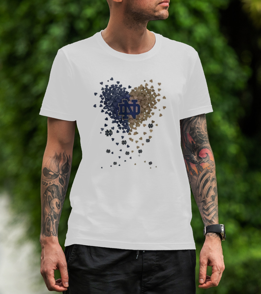 Heart Full Of Notre Dame Fighting Irish ND Logo And Blue Gold Hearts T-Shirt