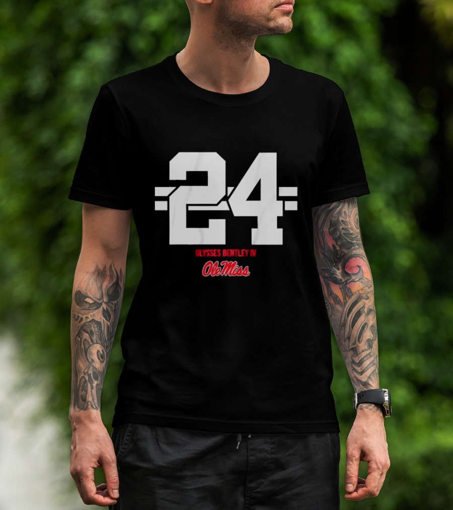 Ole Miss Football Ulysses Bentley IV 24 Jersey Number Striped T-Shirt