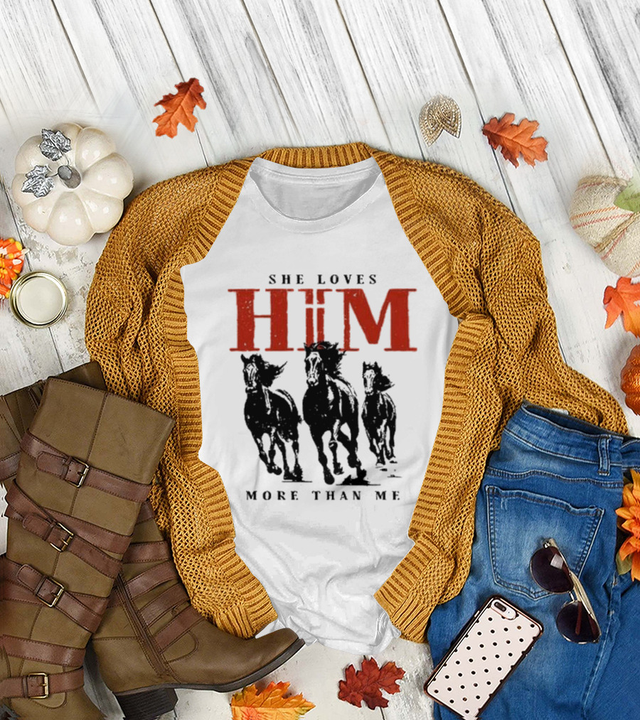 The She Loves Him More Than Me Wild Horses T-shirt is designed for everyday wear and a consistent fit. Fabric is pre-shrunk ring-spun cotton with durable stitching. See the size chart below for exact measurements.