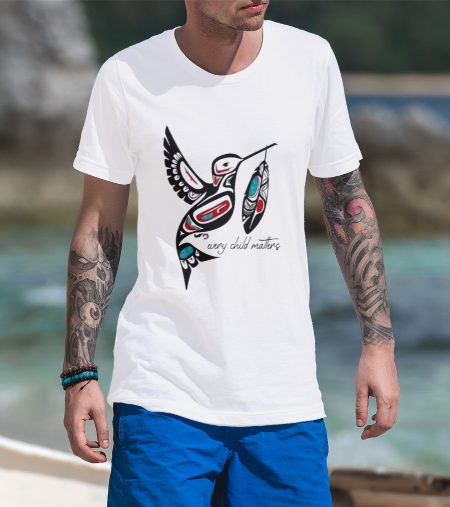 Every Child Matters Indigenous Hummingbird Feathers Orange Day T-Shirt
