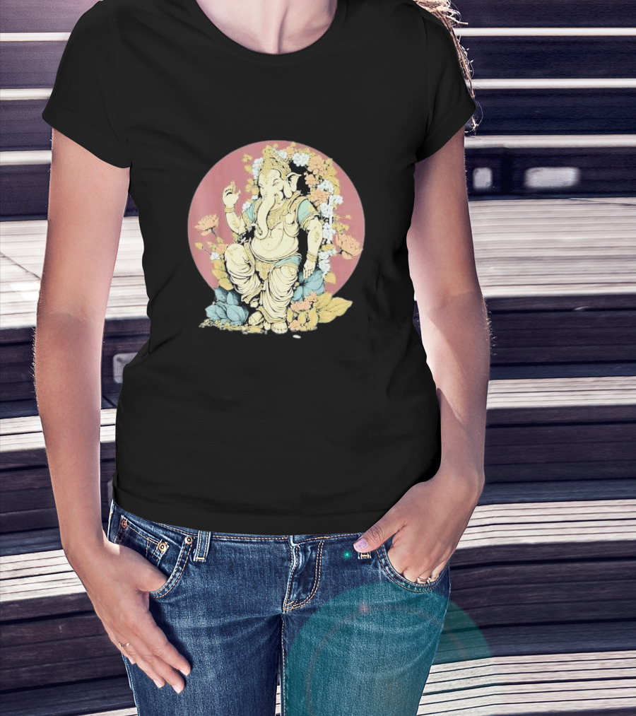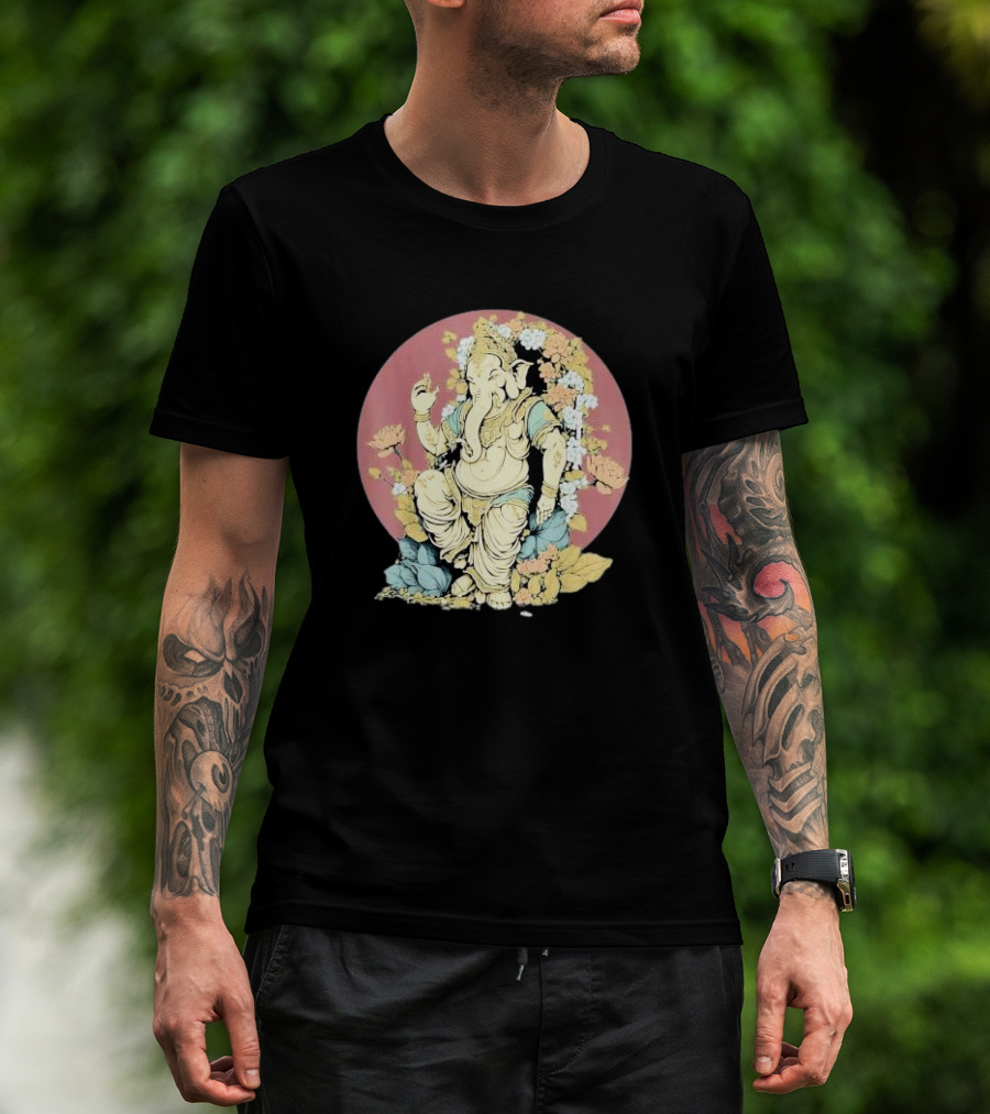 The New Rare Hindu God Floral Elephant Deity Lord Ganesh Lotus Flowers Iconic T-shirt is designed for everyday wear and a consistent fit. Fabric is pre-shrunk ring-spun cotton with durable stitching. See the size chart below for exact measurements.