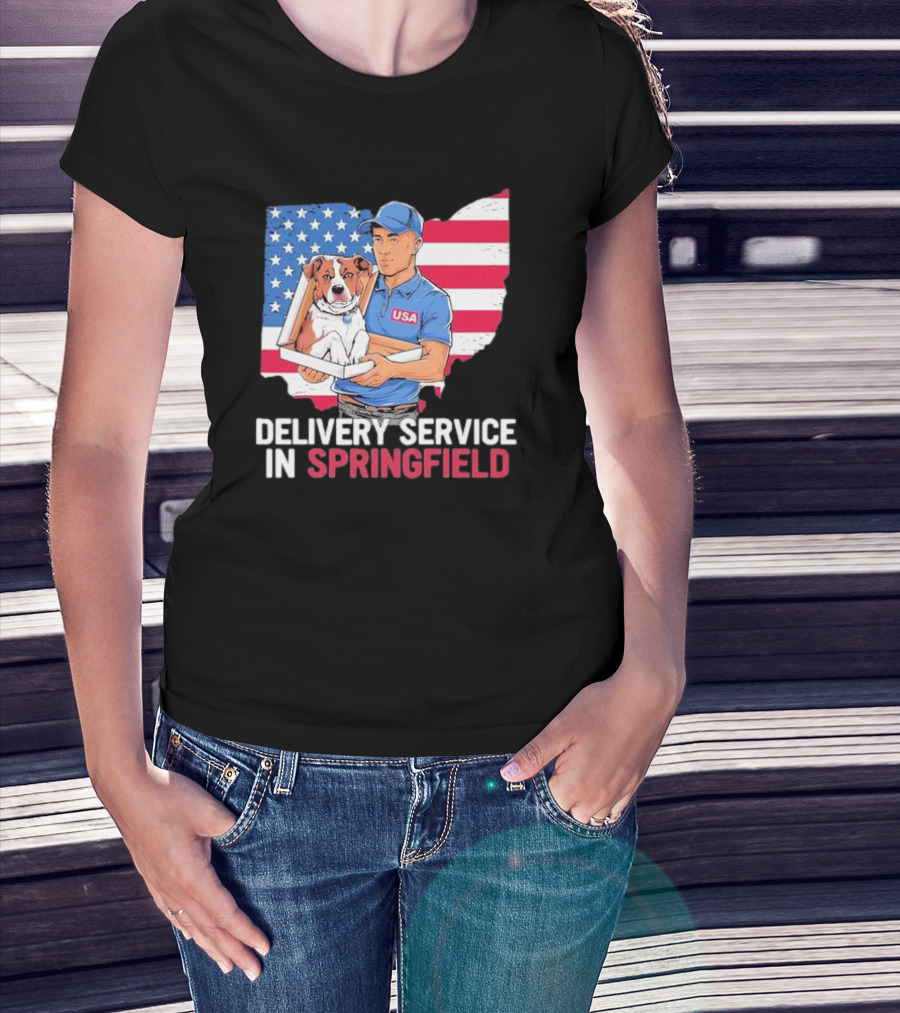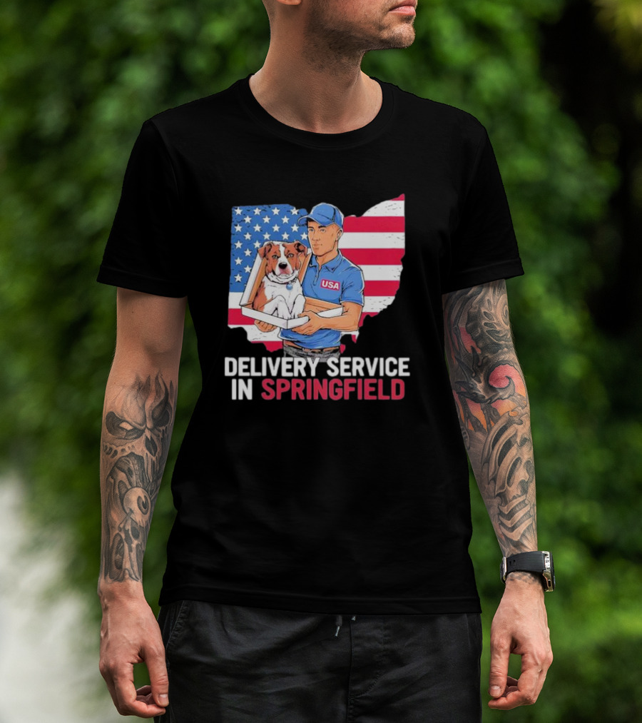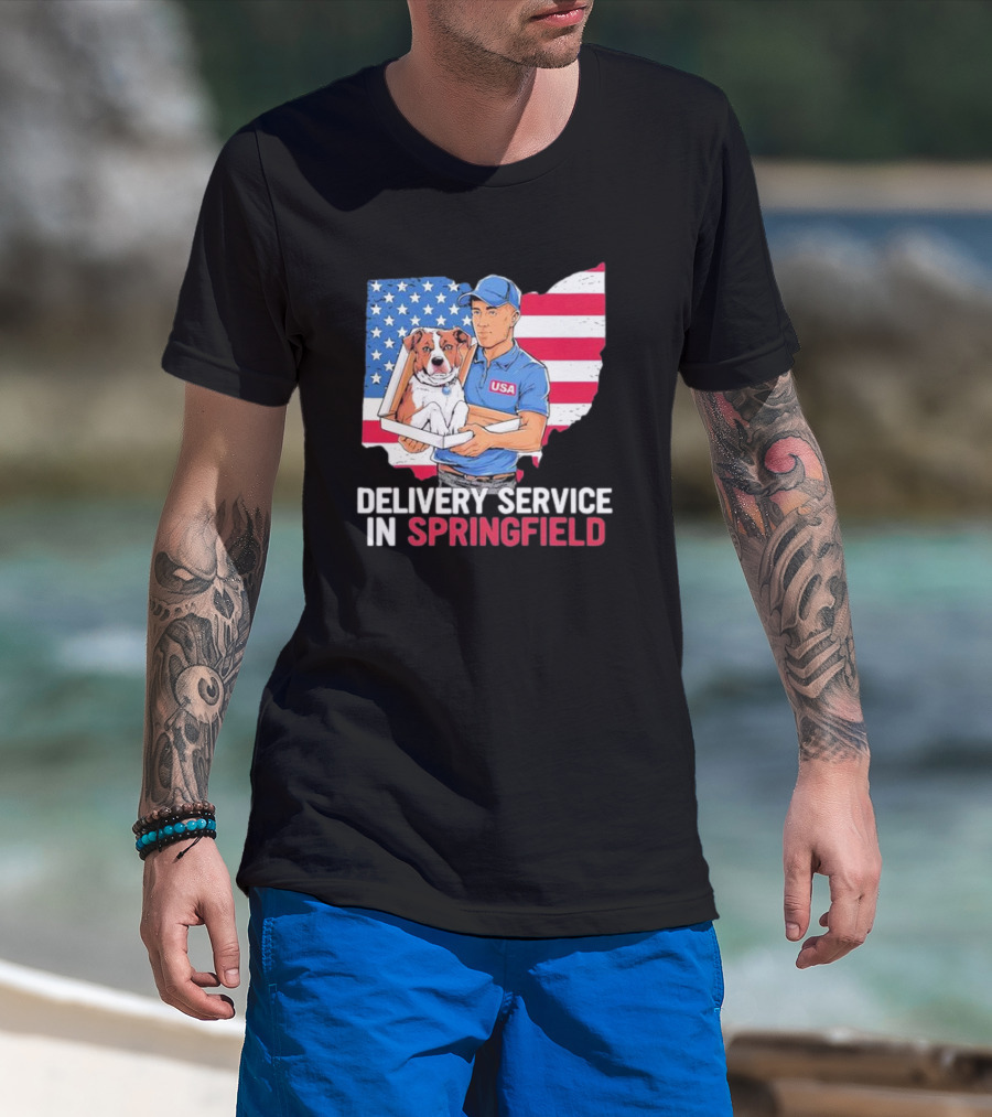 Delivery Service In Springfield USA Dog Parcel Ohio Flag Background T-Shirt