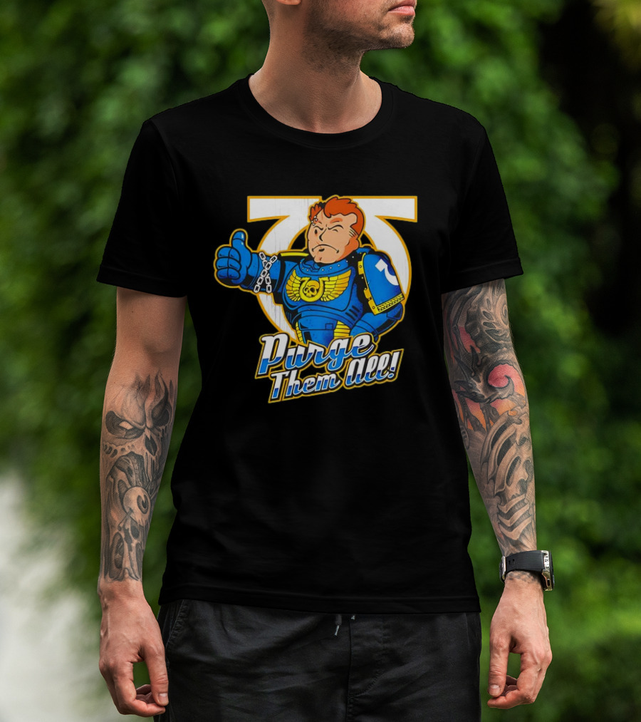 Demetrian Titus Warhammer 40K X Vault Boy Purge Them All Iconic Crossover Mashup T-Shirt