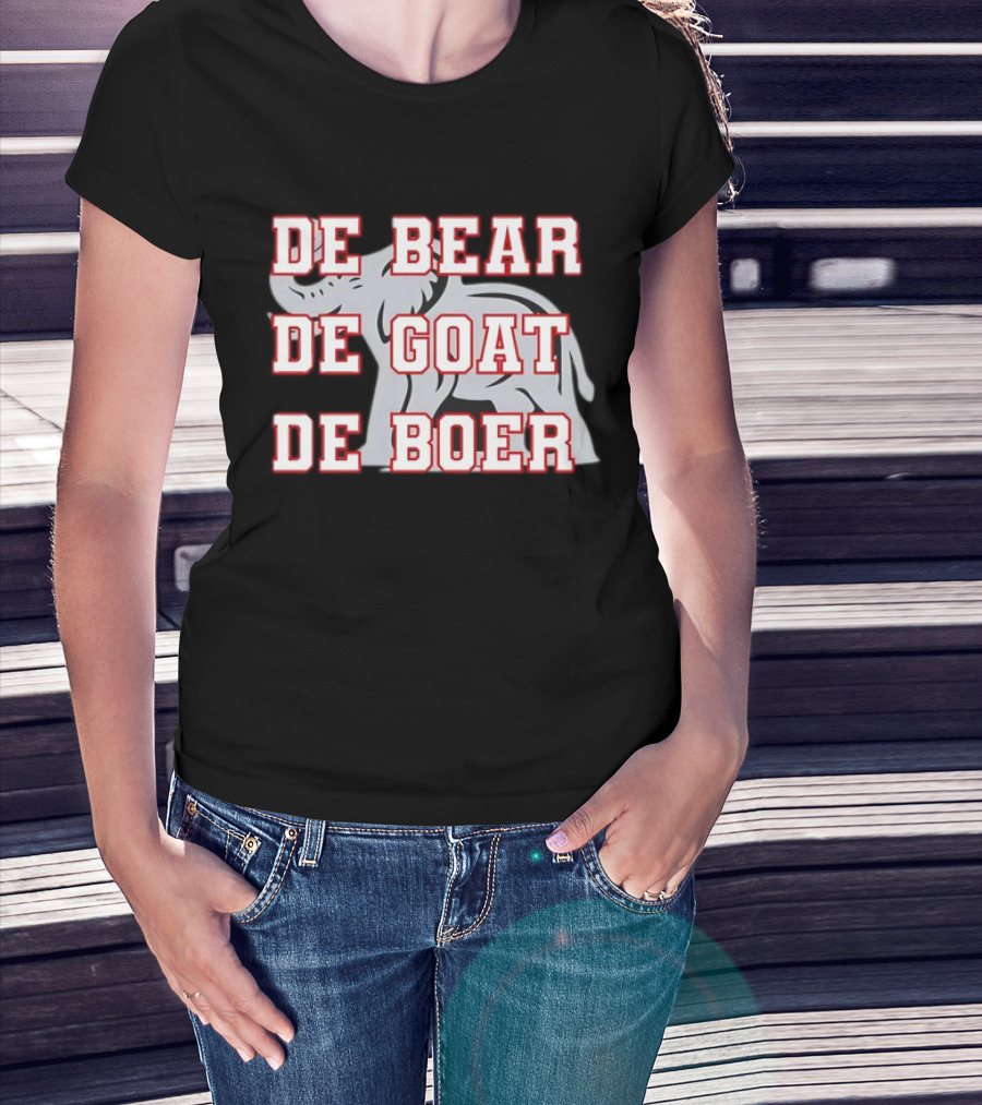 The De Bear De Goat De Boer Elephant T-shirt is designed for everyday wear and a consistent fit. Fabric is pre-shrunk ring-spun cotton with durable stitching. See the size chart below for exact measurements.