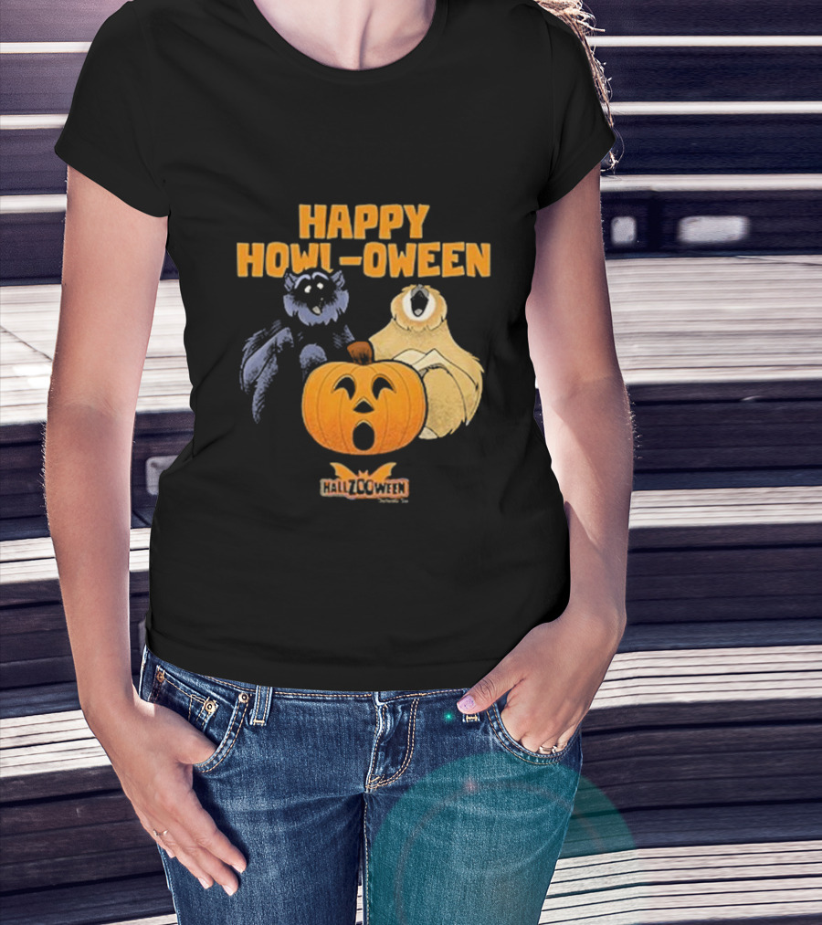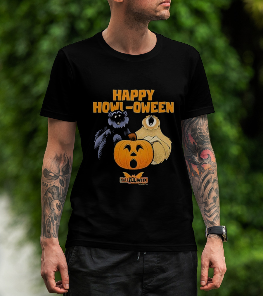 Happy Howl-oween Gibbons With Pumpkin And Hallzcoween Banner T-Shirt