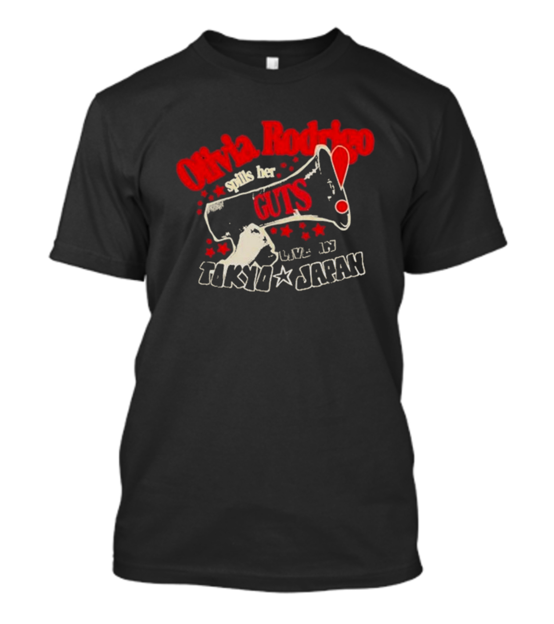 The Olivia Rodrigo Spills Her Guts Live In Tokyo Japan T-shirt is designed for everyday wear and a consistent fit. Fabric is pre-shrunk ring-spun cotton with durable stitching. See the size chart below for exact measurements.