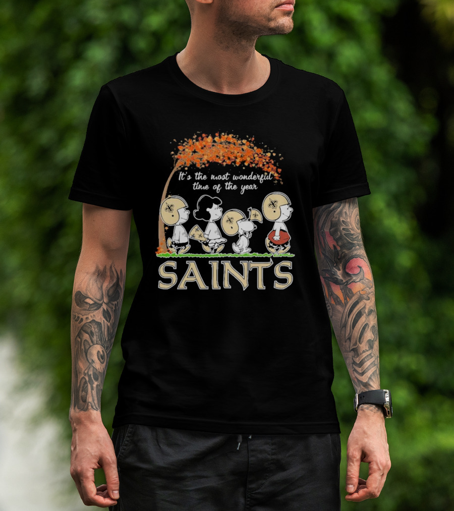 It’s The Most Wonderful Time Of The Year Peanuts Characters New Orleans Saints Football Autumn Leaves T-Shirt