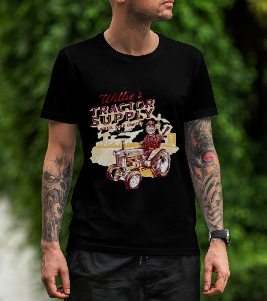 The Willie Nelson Willie's Tractor Supply Weed Seed Feed Farm Aid T-shirt is designed for everyday wear and a consistent fit. Fabric is pre-shrunk ring-spun cotton with durable stitching. See the size chart below for exact measurements.