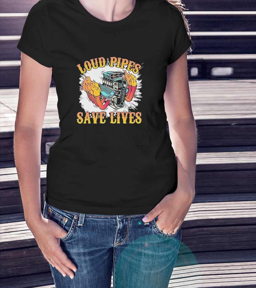 Loud Pipes Save Lives Bike Lovers Fiery Engine T-Shirt