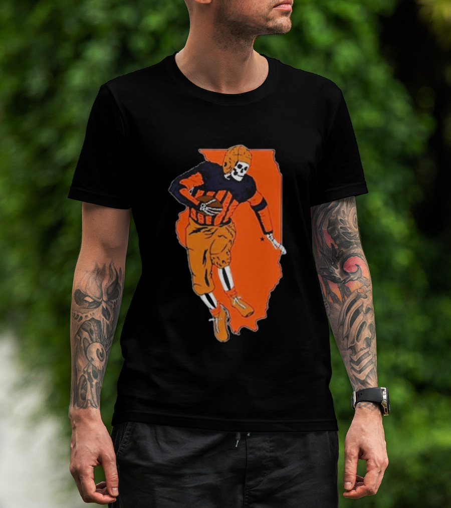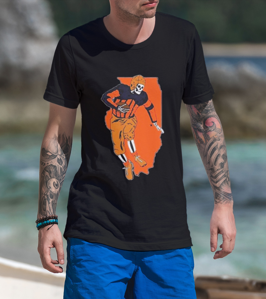 IL Illinois Fighting Illini Football Skeleton Player On Orange State Background T-Shirt