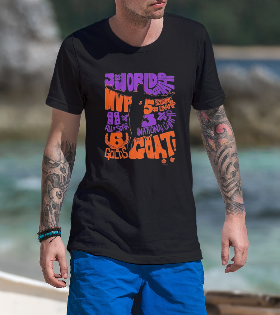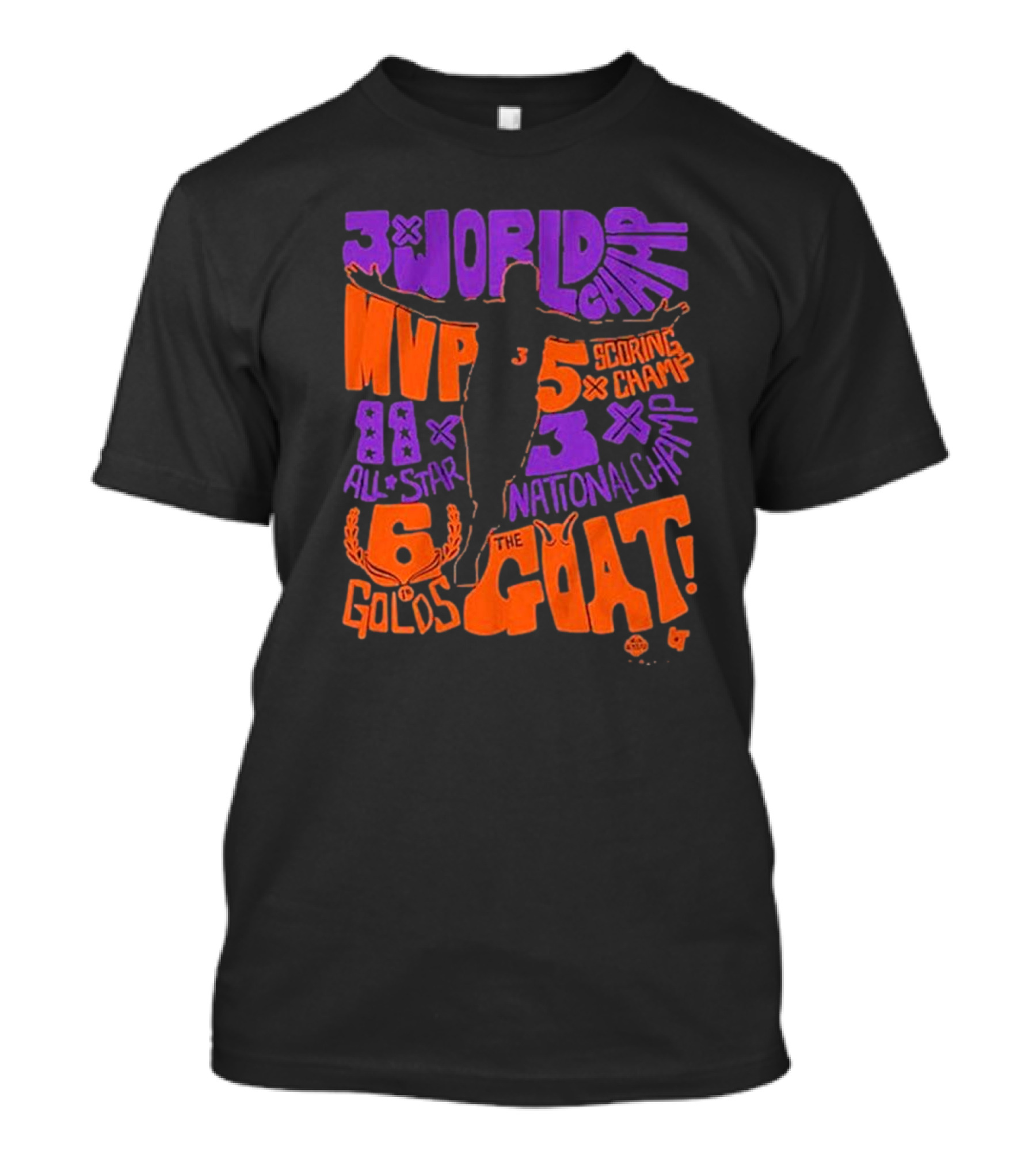 The Phoenix Mercury Diana Taurasi 3x World Champ MVP 5x Scoring Champ 8x All Star 3x National Champ 6 Golds The GOAT T-shirt is designed for everyday wear and a consistent fit. Fabric is pre-shrunk ring-spun cotton with durable stitching. See the size chart below for exact measurements.