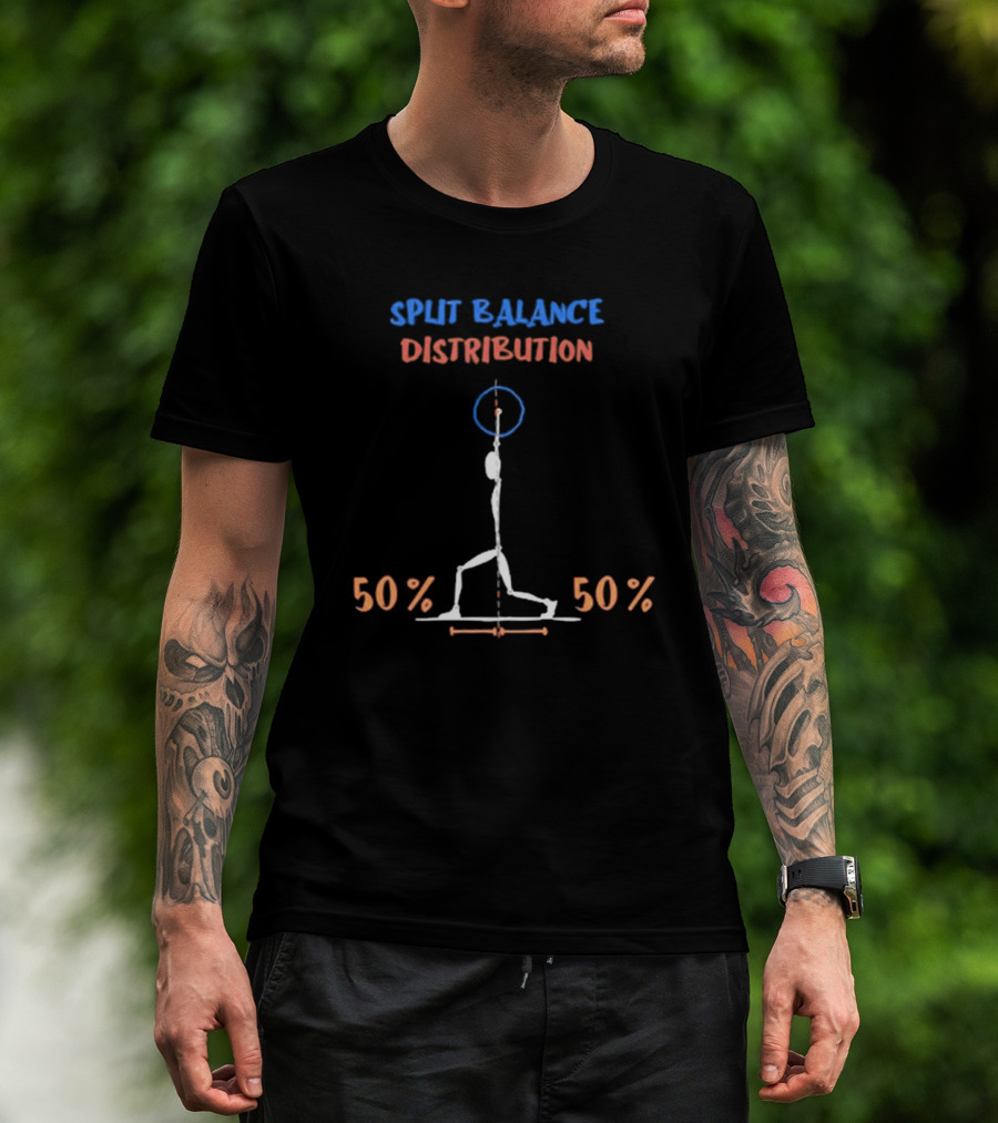 The Split Balance Distribution 50% 50% T-shirt is designed for everyday wear and a consistent fit. Fabric is pre-shrunk ring-spun cotton with durable stitching. See the size chart below for exact measurements.