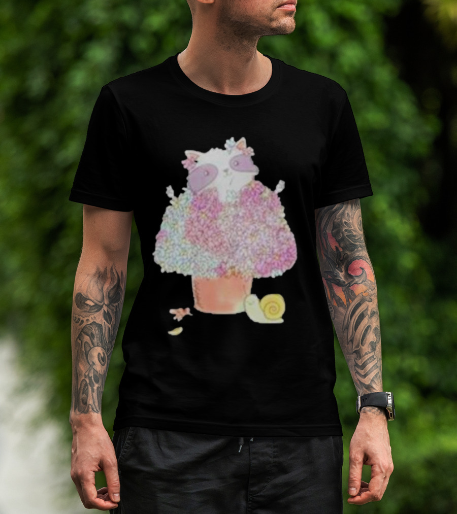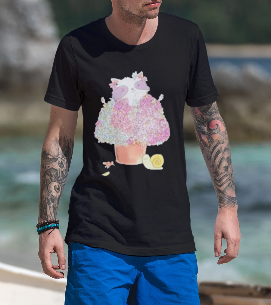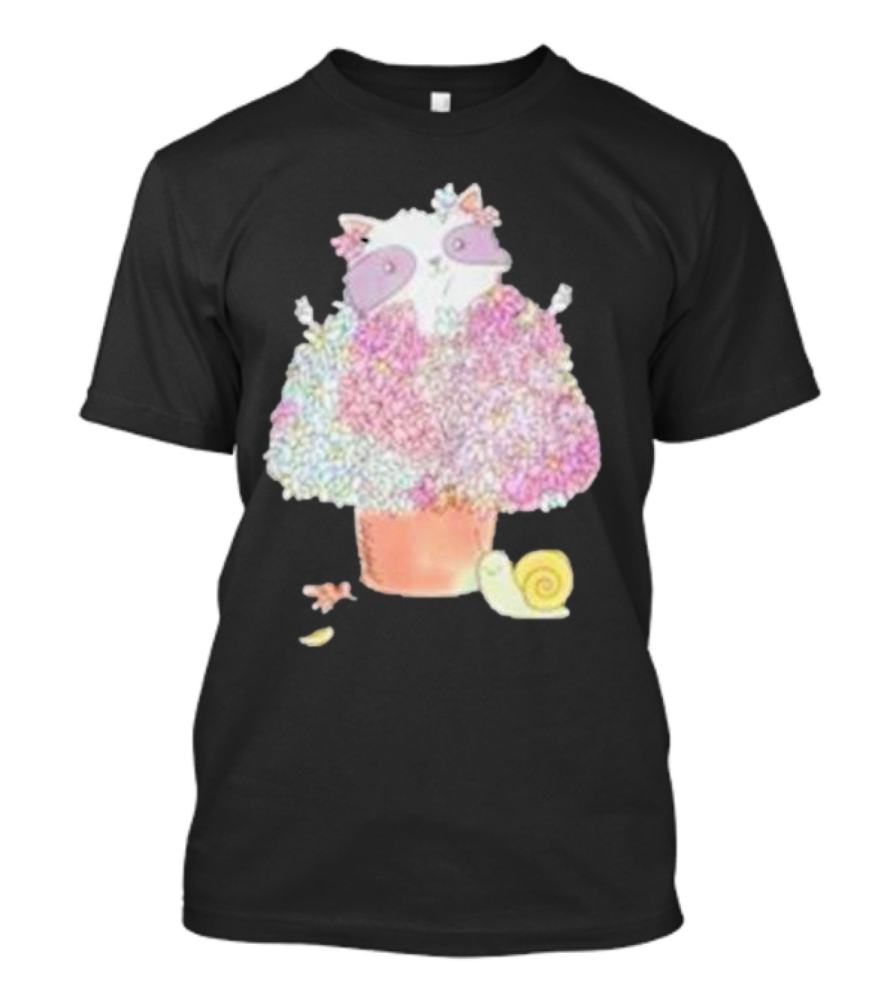 Raccoon With Pastel Flower Bouquet And Snail T-Shirt