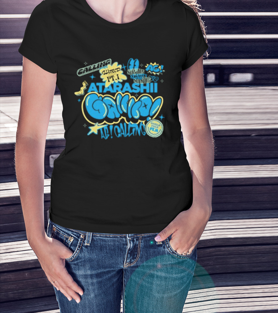 Atarashii Gakko AG At Calling Blue And Black Word Up Tour T-Shirt