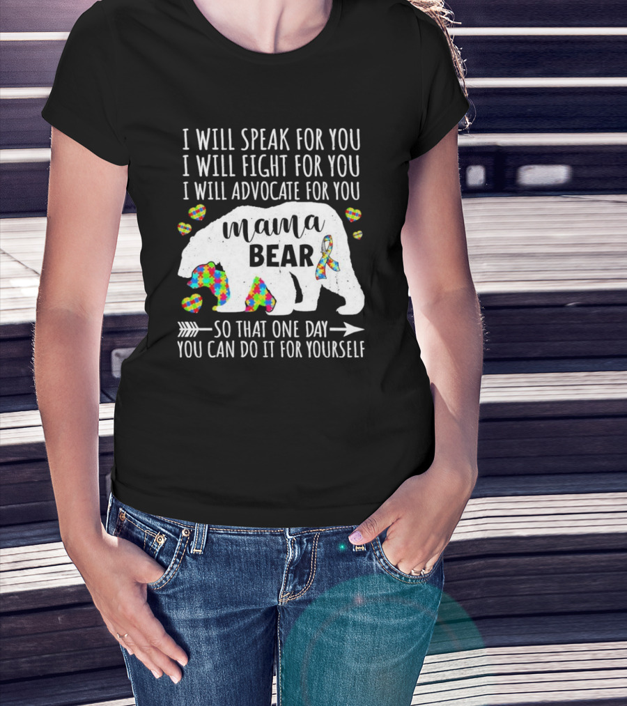 Mama Bear Autism I Will Speak Fight Advocate For You So That One Day You Can Do It For Yourself T-Shirt