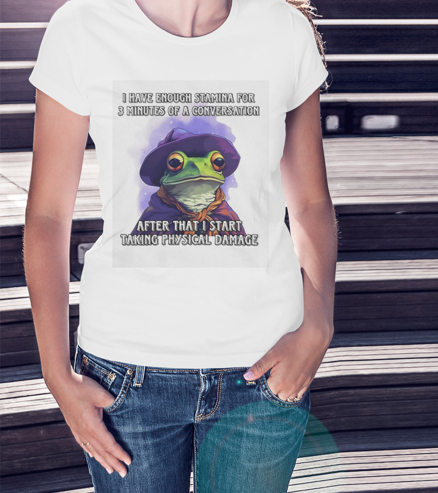 Frog Witch I Have Enough Stamina For 3 Minutes Of A Conversation After That I Start Taking Physical Damage T-Shirt