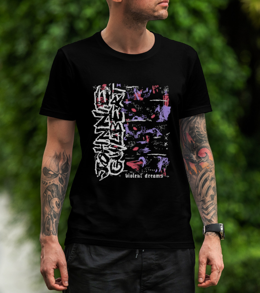 The Violent Dreams Abstract Wolf Red Blue T-shirt is designed for everyday wear and a consistent fit. Fabric is pre-shrunk ring-spun cotton with durable stitching. See the size chart below for exact measurements.