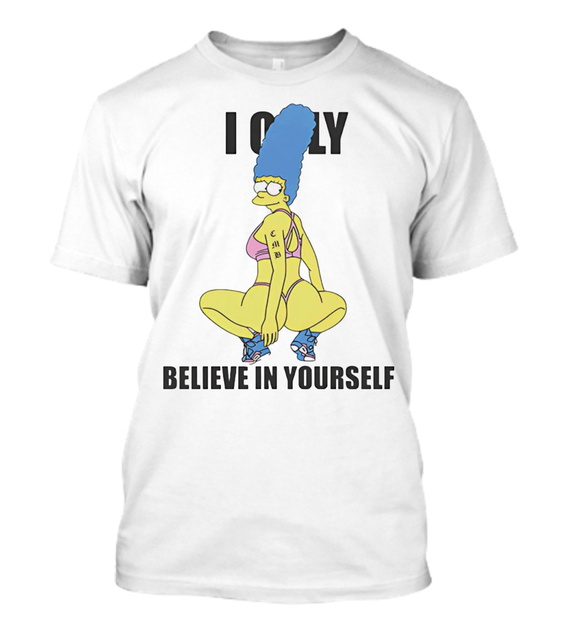 The Marge Simpson I Only Believe in Yourself Athletic T-shirt is designed for everyday wear and a consistent fit. Fabric is pre-shrunk ring-spun cotton with durable stitching. See the size chart below for exact measurements.