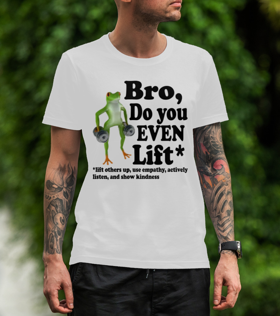 Bro, Do You Even Lift Frog With Dumbbells Use Empathy Actively Listen Show Kindness T-Shirt